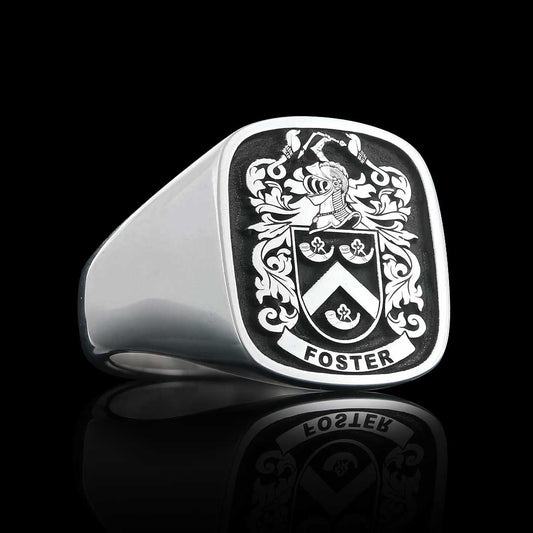Description:Natural Finish Crest Ring with crest on shield and name in banner. Face Size 19mm x 17mm